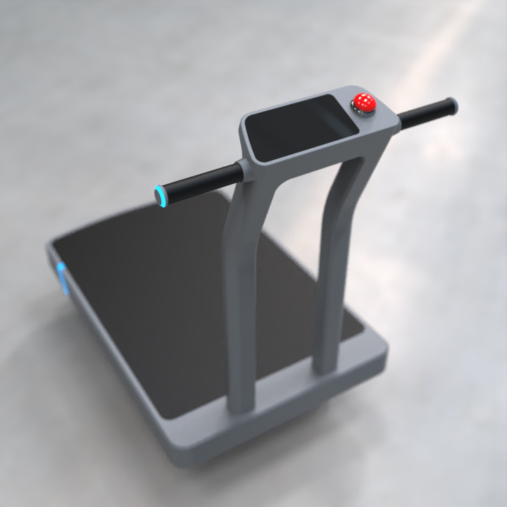また自動走行中は台車部分の傾斜表示と取っ手の両端を青く光らせ、存在を周囲へ知らせます。