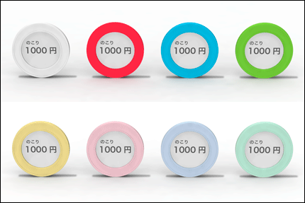 残高表示は通信(店頭のリーダーへのタッチ時)の際に、通電も行いその電力を使用して電子ペーパーの表示を更新します。そのため電子マネー本体内に電池を内臓しません。