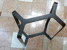 左の写真の水栓は、円筒形と円錐形の基本形状を中心とした組み合わせのシンプルかつ印象的な形状です。